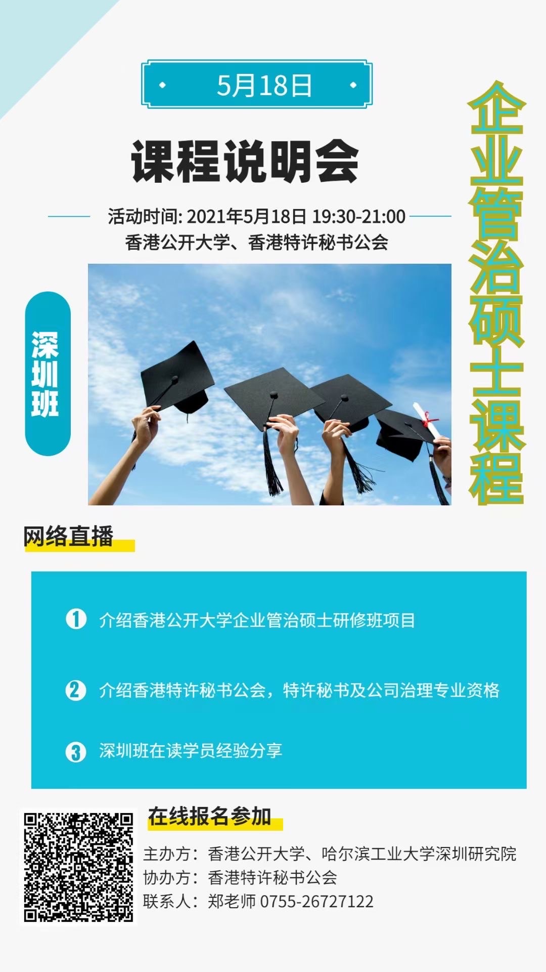 香港公开大学企业管治硕士(深圳班)2021学年招生截止时间:2021年6月30日。