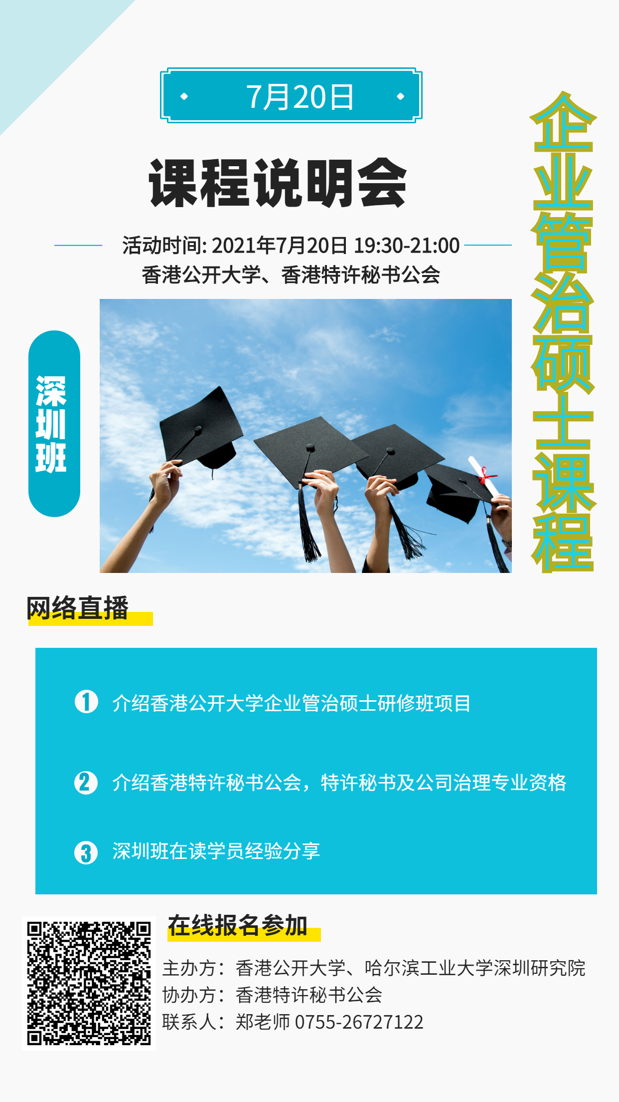 应广大课程咨询者强烈要求,现调整2021年香港公开大学企业管治硕士课程(深圳班)招生截止时间: